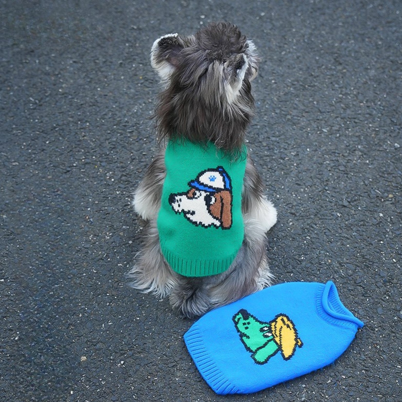 愛犬との毎日をもっと楽しくしてくれる、遊び心あふれるキャラクターニットです🐶💙
